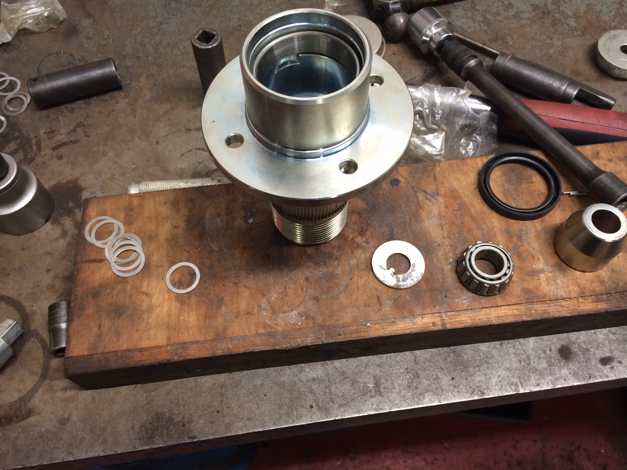 With the great help of Stuart from M3 Motors we made progress building the front and rear hubs. I had forgotten to take the inner and outer grease seal rings so we could not finish the rear hubs. We then ran out of shims for the front RHS hub after completing the LHS. It means the job is not complete and will need to be revisited!