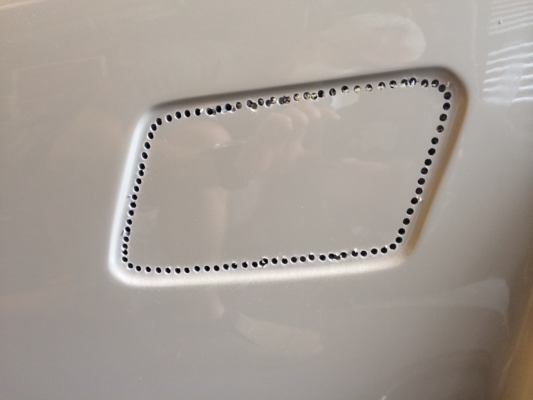 I have finally bought suitable protection mask for drilling fiberglass so can now get on with cutting out parts of the body. It didn’t take long once I worked out what I would do. I decided to drill holes and then use the dremel to cut through and finish the edges. It worked very well, but care is needed as the dremel can really go through the body at a rate of knots if you don’t concentrate!