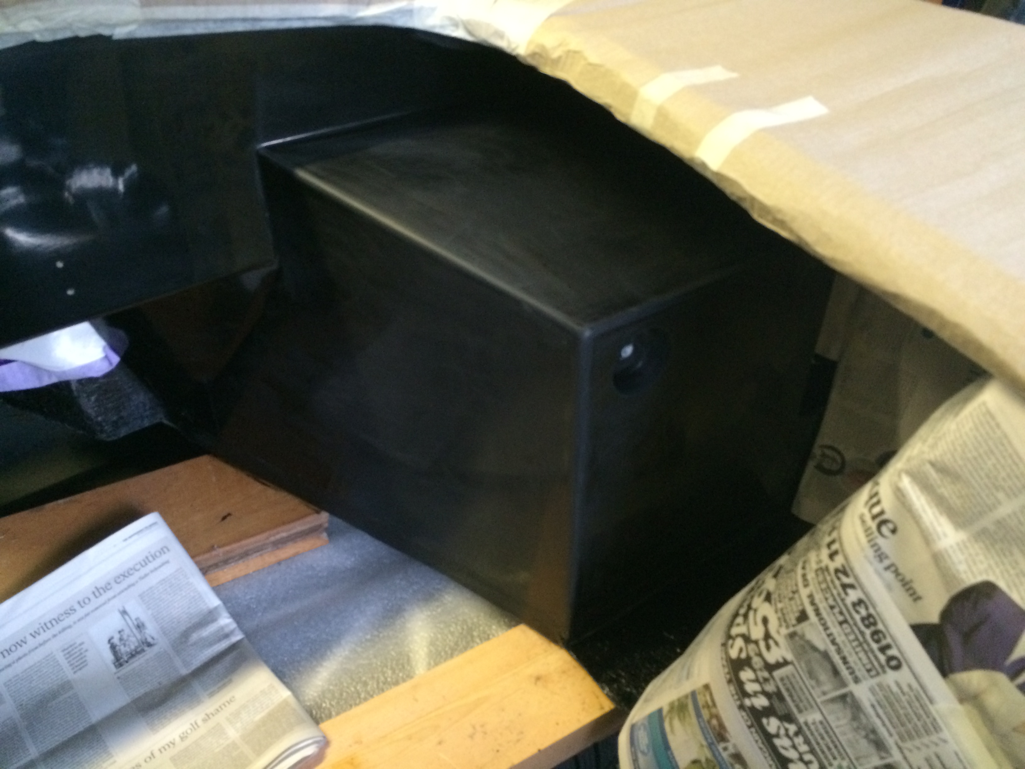The original AC Cobras all had white foot boxes….I took a while to decide what I would do in preparation of the engine bay. Should i paint the foot boxes, should I line in Aluminium ?