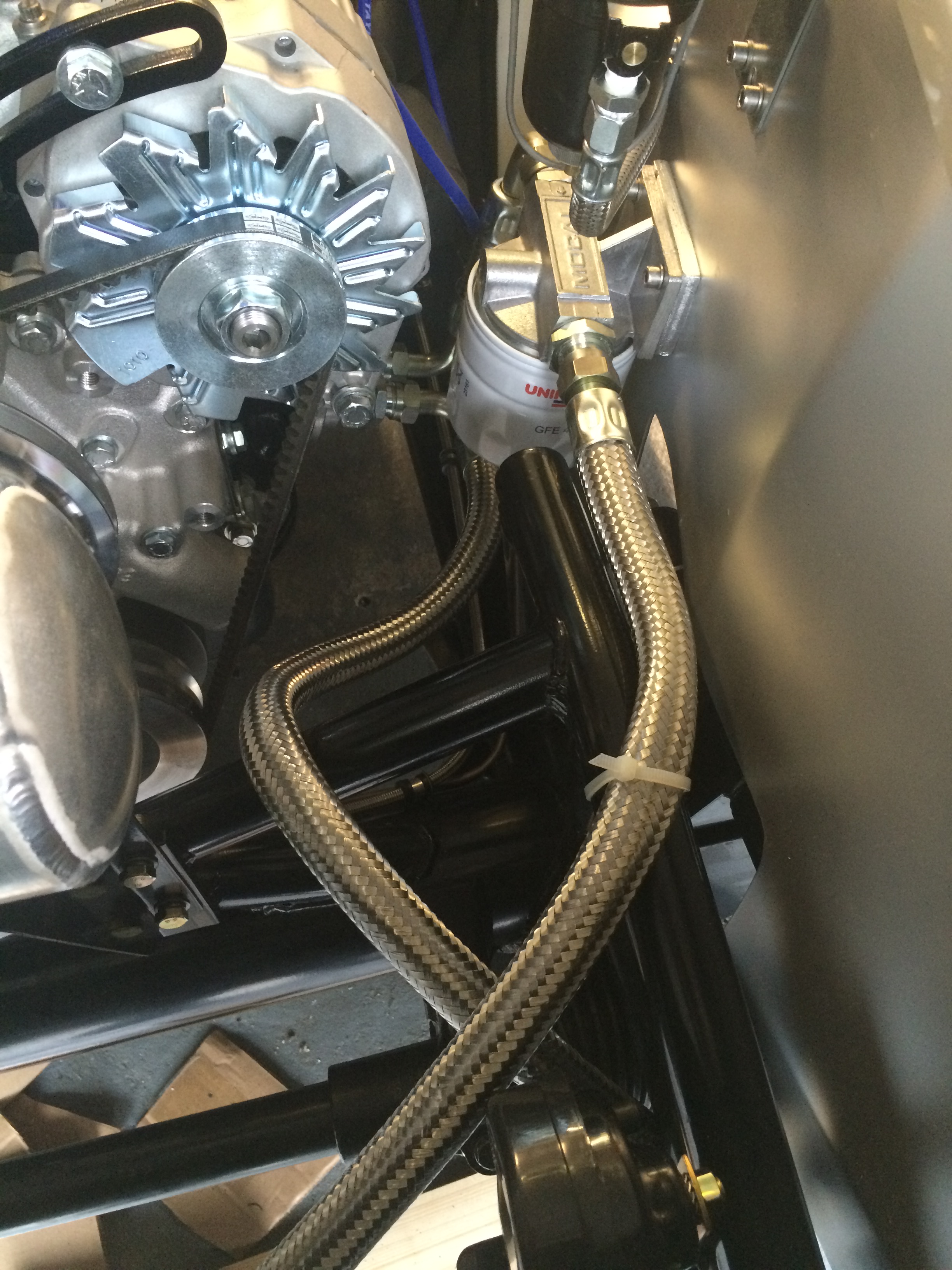 The FIA was fitted with a oil cooler that its infant of the radiator in the lower opening. The kits comes with all the pipes and auxiliaries to fit, including a remote oil filter fitting.
