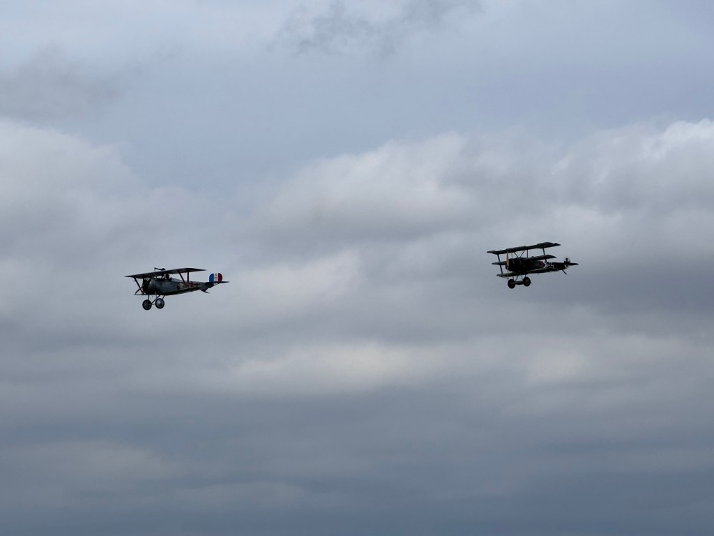 It’s an interesting mix of classic car club displays, fast runway runs and drag racers from a pistons point of view. From a propeller point of view WW1 single seaters in simulated dog fights and a Lancaster fly over.